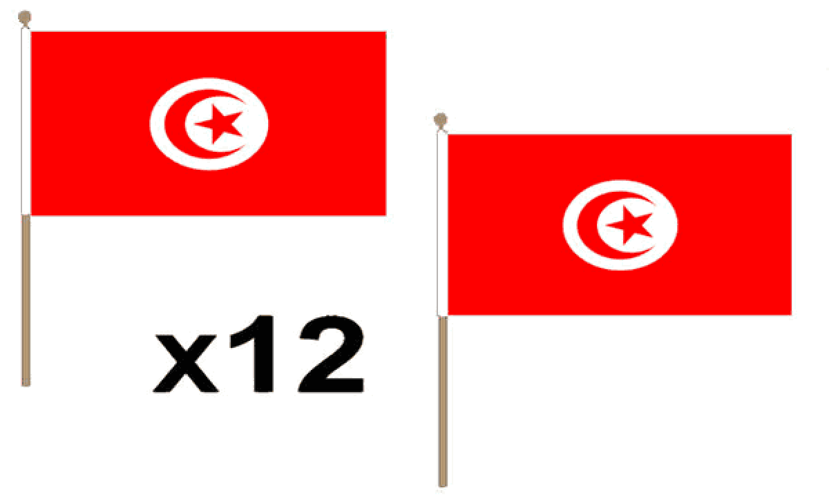 • 100% polyester flags on wooden poles with plastic cap.